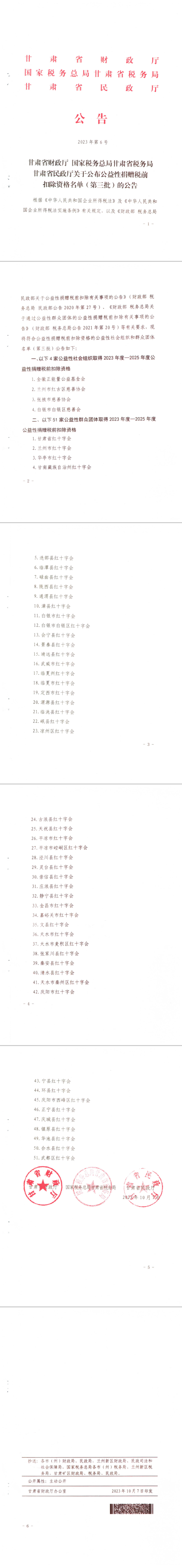 轉(zhuǎn)載|甘肅省財政廳 國家稅務(wù)總局甘肅省稅務(wù)局甘肅省民政廳關(guān)于公布公益性捐贈稅前扣除資格名單(第三批)的公告